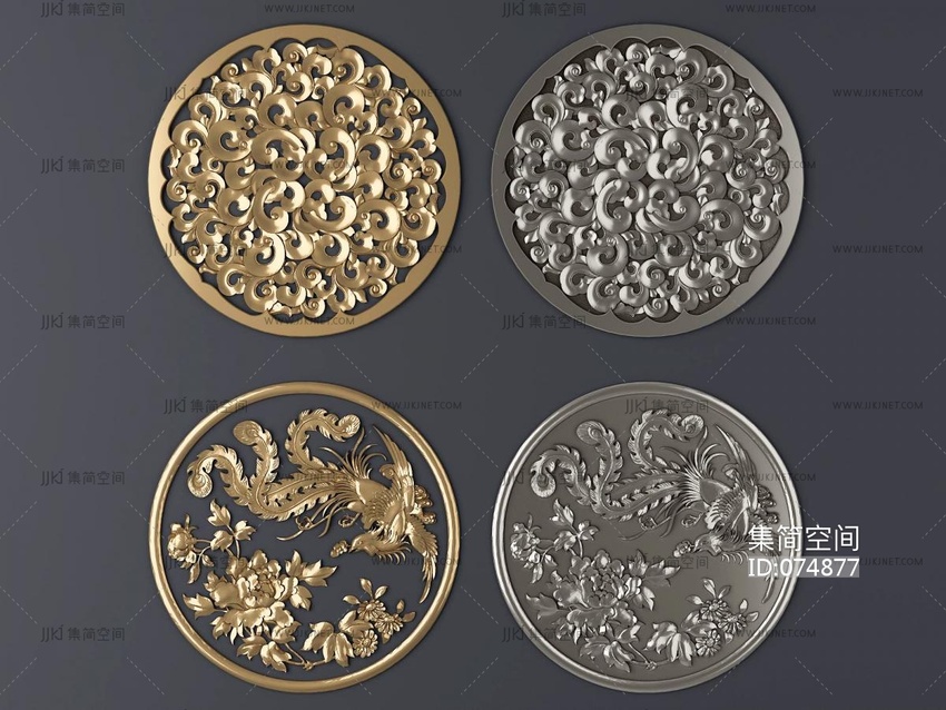 中式圆形凤纹祥云,云纹纹理图案,雕花 3d模型下载 [模型ID:74877]