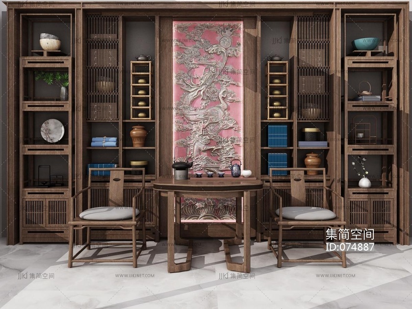 中式古典书房书柜茶室 3d模型下载 [模型ID:74887]