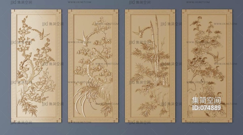 中式雕花,梅兰竹菊花纹图案浮雕 3d模型下载 [模型ID:74889]