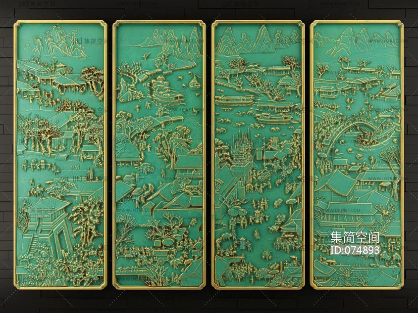 中式古代城市,清明上河图浮雕 3d模型下载 [模型ID:74893]