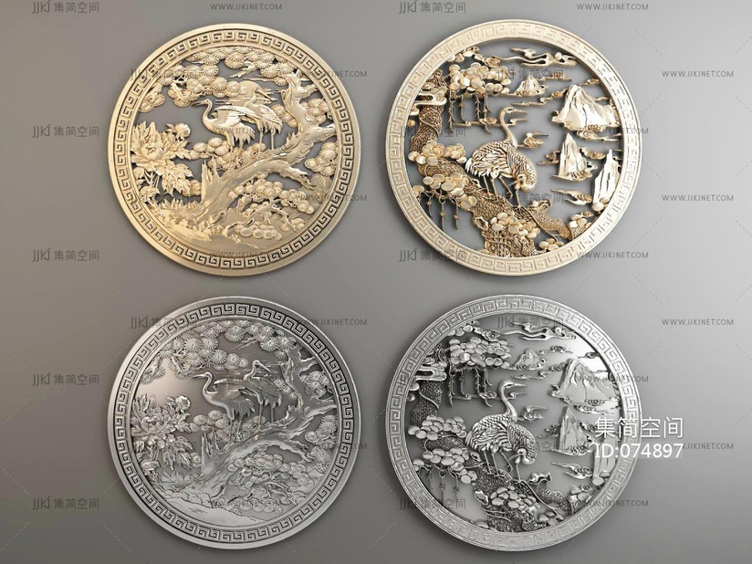 中式雕花,圆形仙鹤浮雕 3d模型下载 [模型ID:74897]