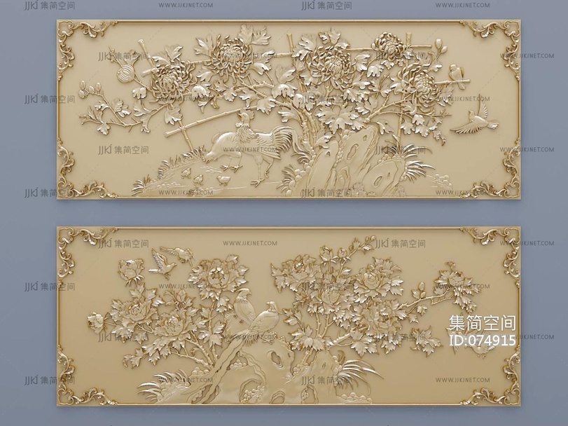 中式花鸟牡丹图案,雕花,浮雕,木雕,雕刻 3d模型下载 [模型ID:74915]