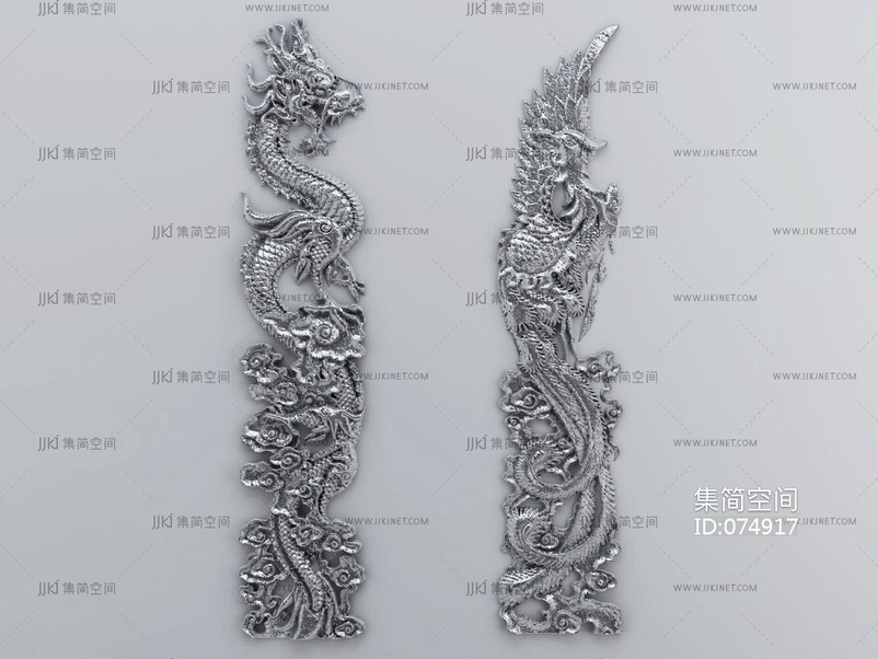 中式龙纹,凤凰纹理图案 3d模型下载 [模型ID:74917]