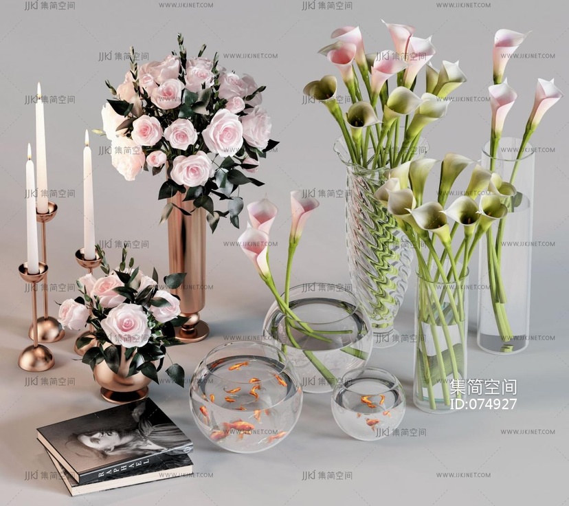 欧式花瓶,插花,花艺,烛台摆件 3d模型下载 [模型ID:74927]