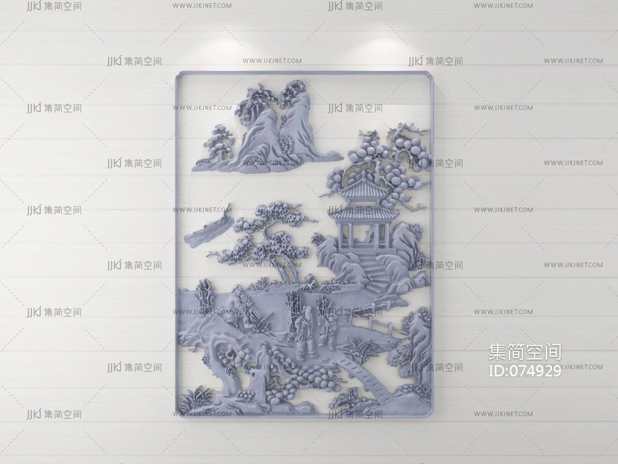 中式浮雕,山,凉亭图案,雕花 3d模型下载 [模型ID:74929]