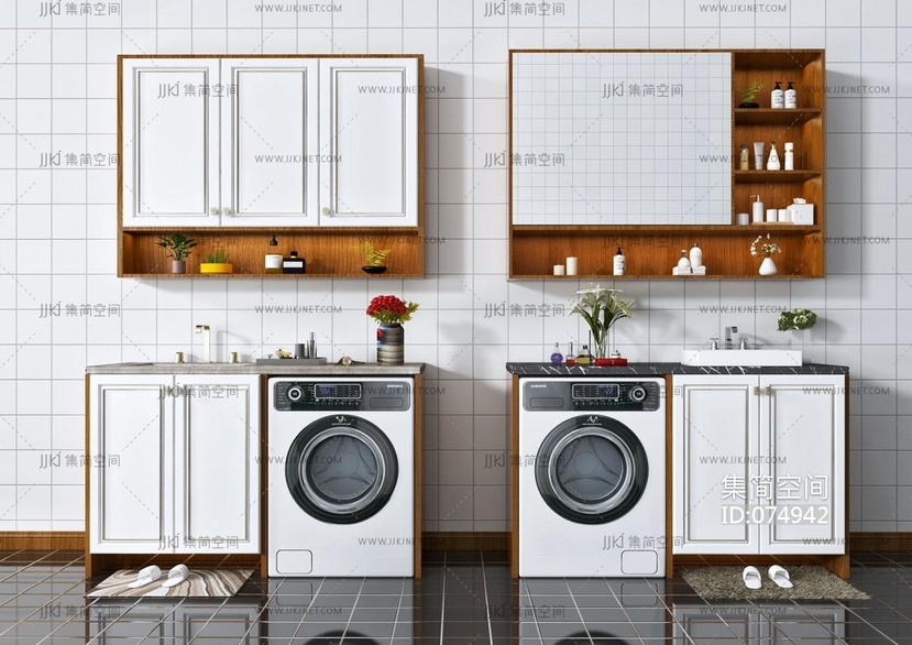 现代阳台卫生间浴室柜洗衣机伴侣,橱柜吊柜 3d模型下载 [模型ID:74942]