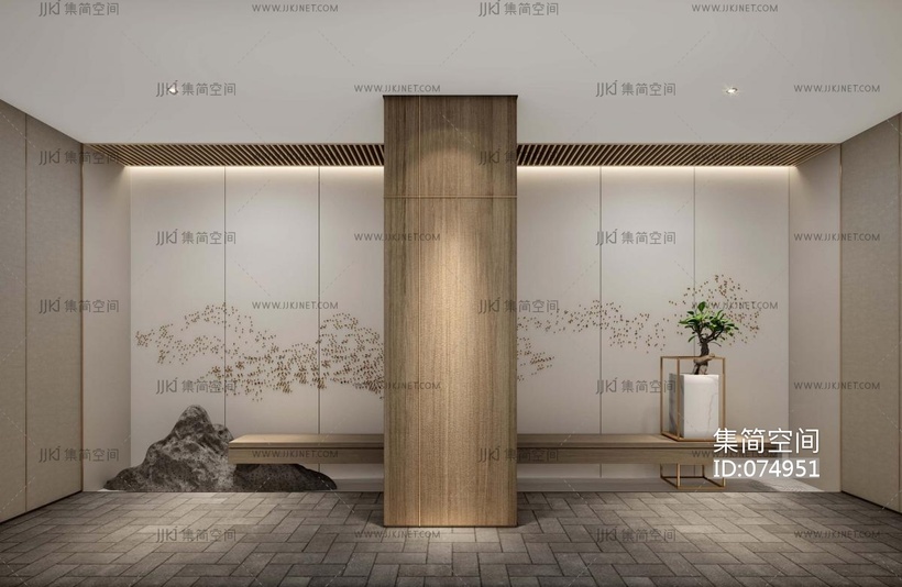新中式玄关饰品摆件,摆台造型墙面 3d模型下载 [模型ID:74951]