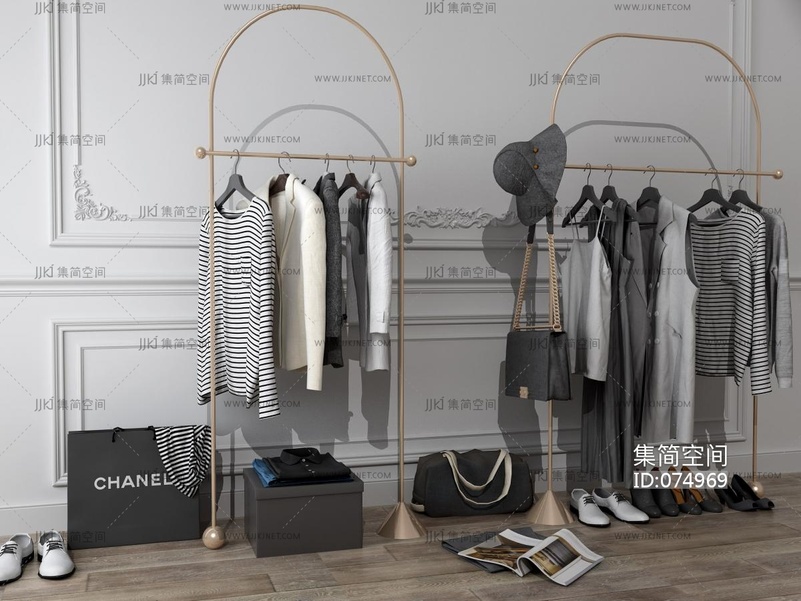 现代服装店,服装,衣服衣架鞋子模型 3d模型下载 [模型ID:74969]