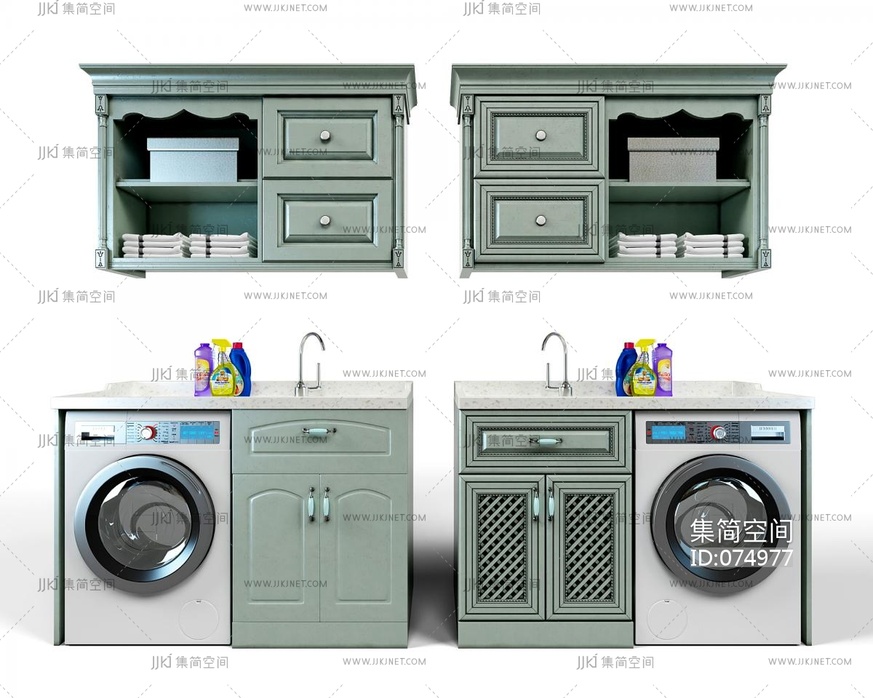 美式欧式浴室柜,洗手台洗衣机 3d模型下载 [模型ID:74977]
