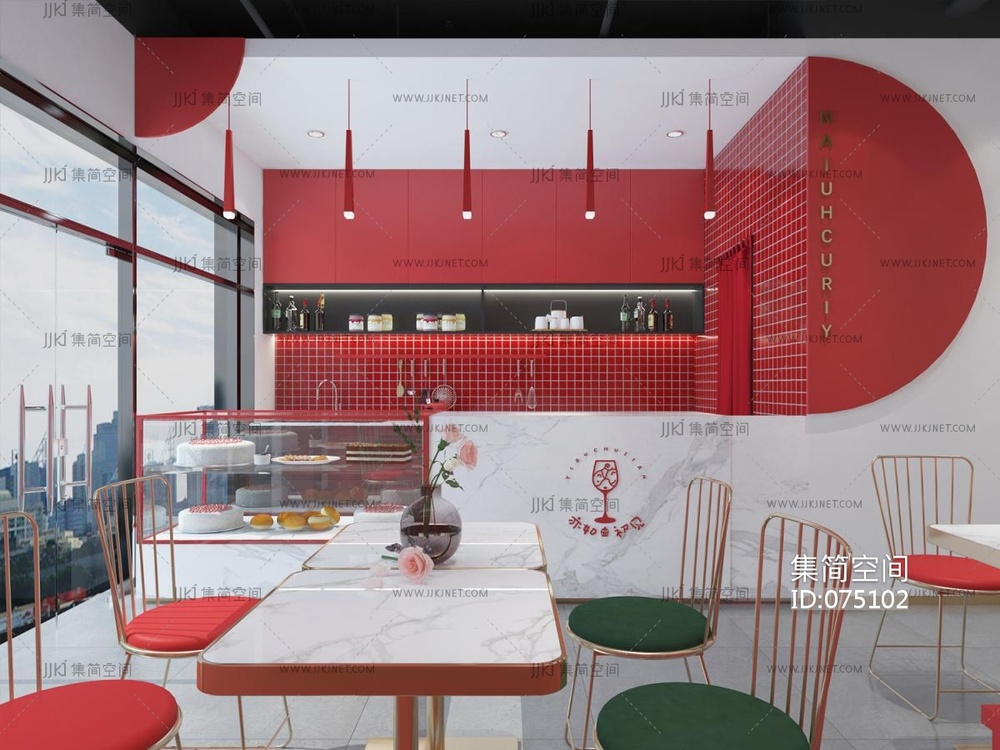 现代甜品奶茶店,蛋糕店,餐厅,铁艺餐桌椅,稻草芦苇草 3d模型下载 [模型ID:75102]