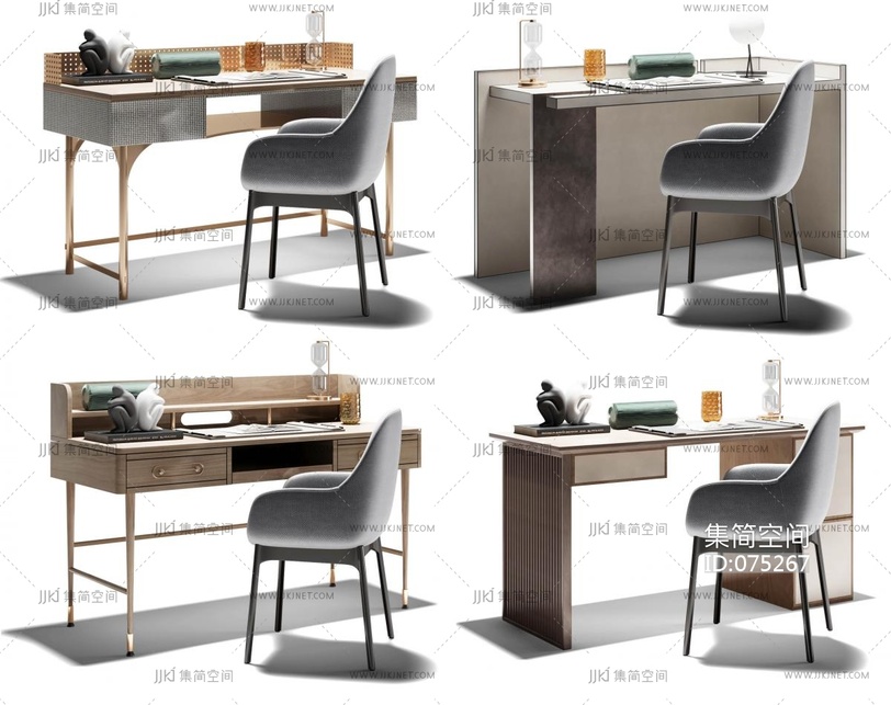 现代书桌,梳妆台,竹桌椅,椅子写字台 3d模型下载 [模型ID:75267]