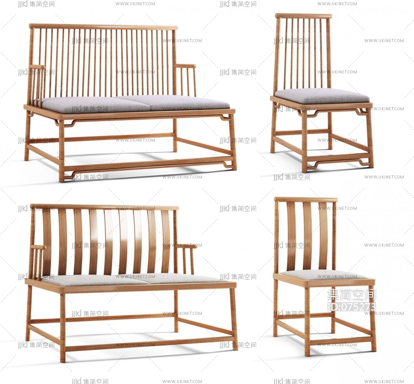 中式中式椅子,单椅,休闲椅,座椅 3d模型下载 [模型ID:75273]