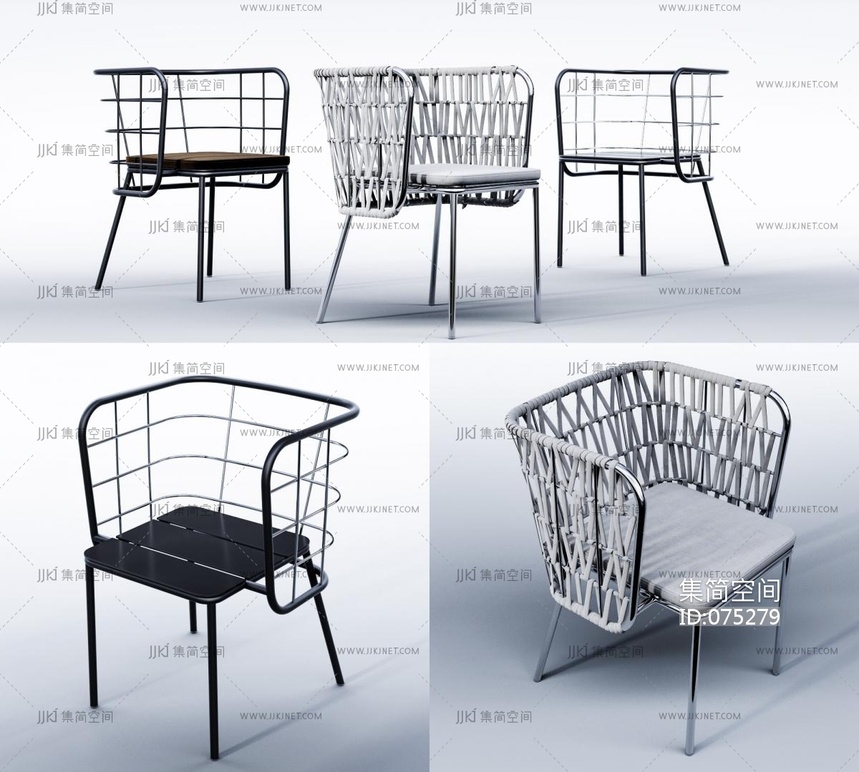现代工业风户外藤编休闲椅,椅子,户外椅,铁丝椅 3d模型下载 [模型ID:75279]