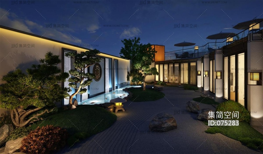 中式会所景观庭院 3d模型下载 [模型ID:75283]