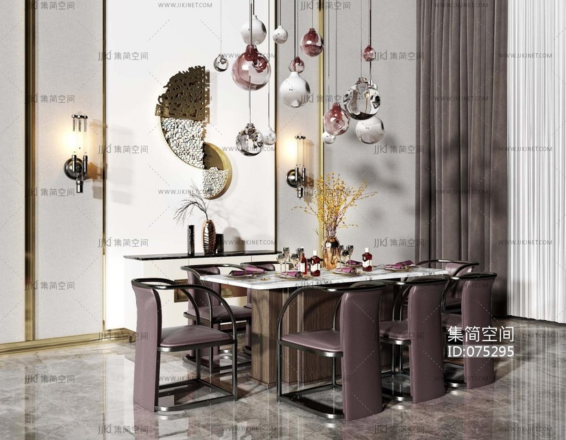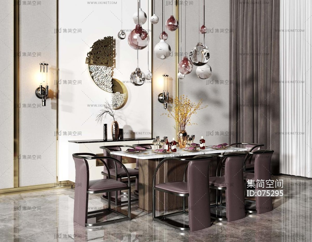 新中式现代轻奢餐桌椅子,餐具,吊灯,壁灯 3d模型下载 [模型ID:75295]