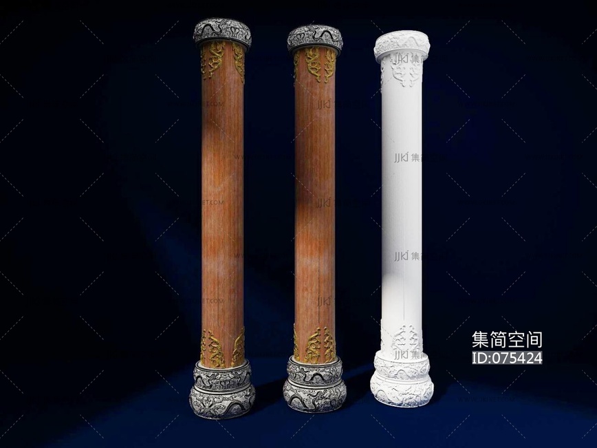 中式雕花柱子,龙纹底座,柱头,柱子座底座,柱头3d模型下载 3d模型下载 [模型ID:75424]
