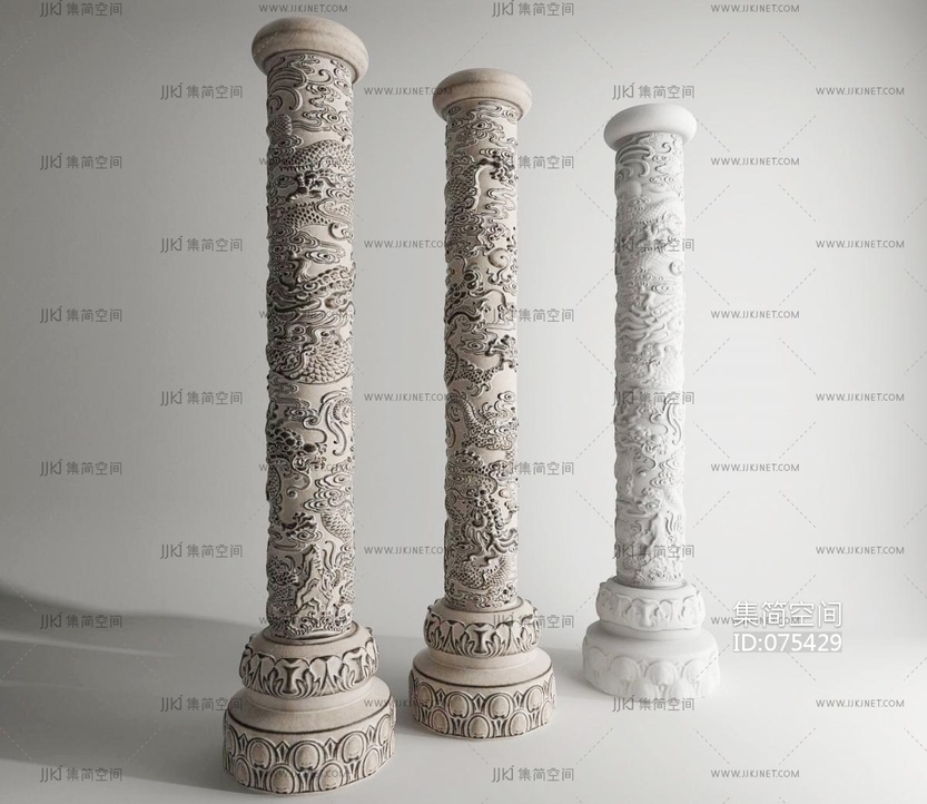 中式盘龙,龙纹柱子,龙纹雕刻石雕 3d模型下载 [模型ID:75429]