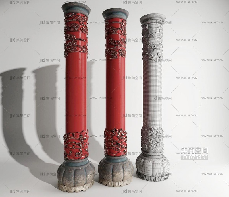 中式柱子,云纹,红漆,莲花底座,柱子座底座,柱头3d模型下载 3d模型下载 [模型ID:75431]