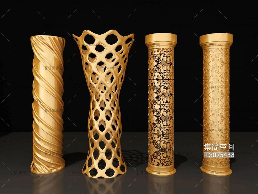 现代欧式柱子,雕花,镂空网格,扭曲异形柱子 3d模型下载 [模型ID:75438]