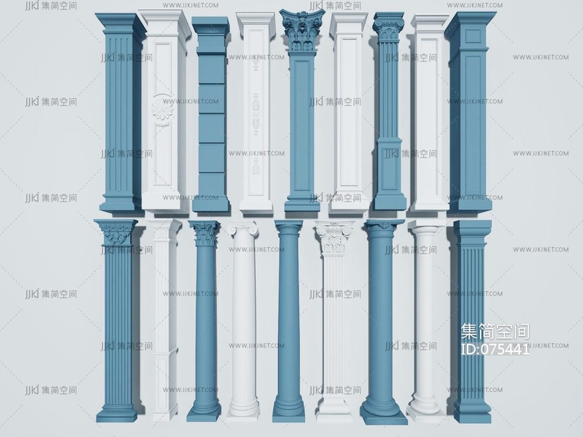 欧式罗马柱子,柱头,线脚柱子构件 3d模型下载 [模型ID:75441]