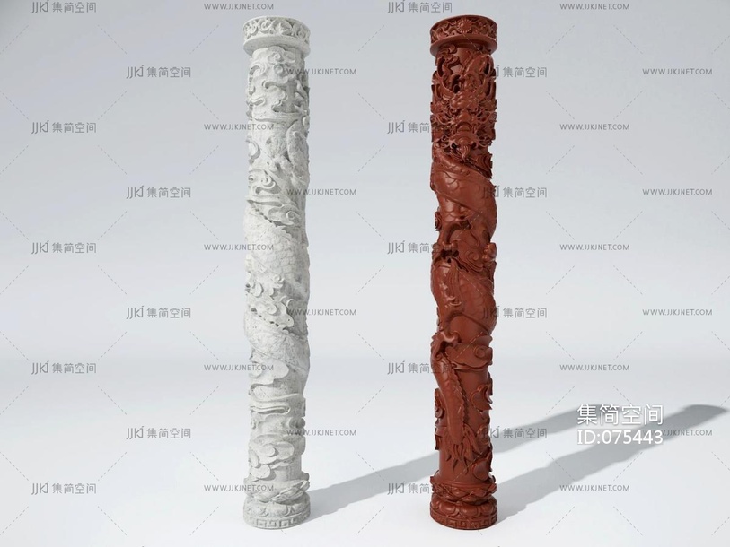 中式盘龙雕花柱子,莲花底座柱子座底座 3d模型下载 [模型ID:75443]