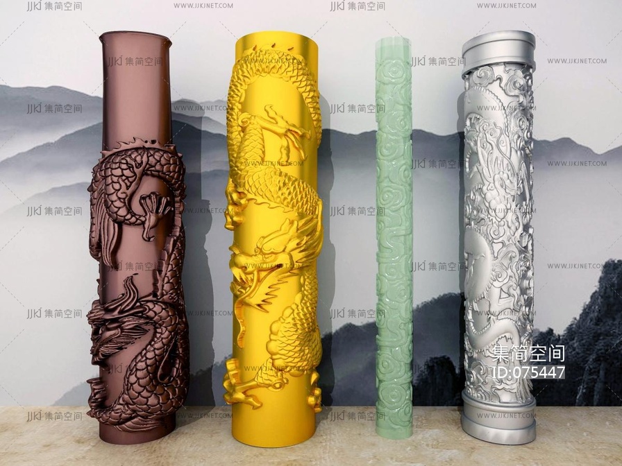 中式,盘龙雕刻,云纹雕刻,雕花柱子3d模型下载 3d模型下载 [模型ID:75447]