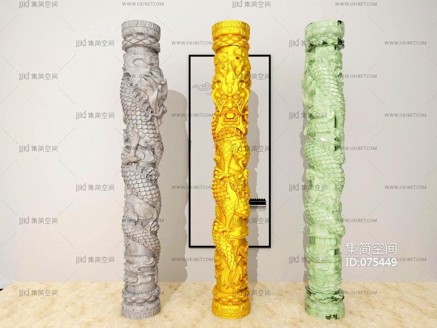 中式,盘龙雕刻,浮雕座底座,柱头,柱子 3d模型下载 [模型ID:75449]