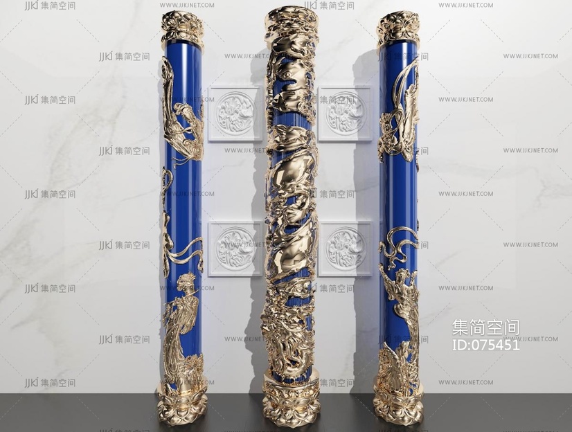 中式龙凤纹理浮雕,雕花,盘龙,方形雕花浮雕,柱子 3d模型下载 [模型ID:75451]