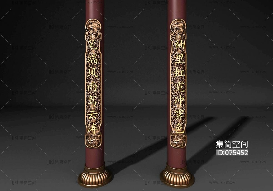 中式柱子,金属雕花,对联,浮雕柱子座底座 3d模型下载 [模型ID:75452]