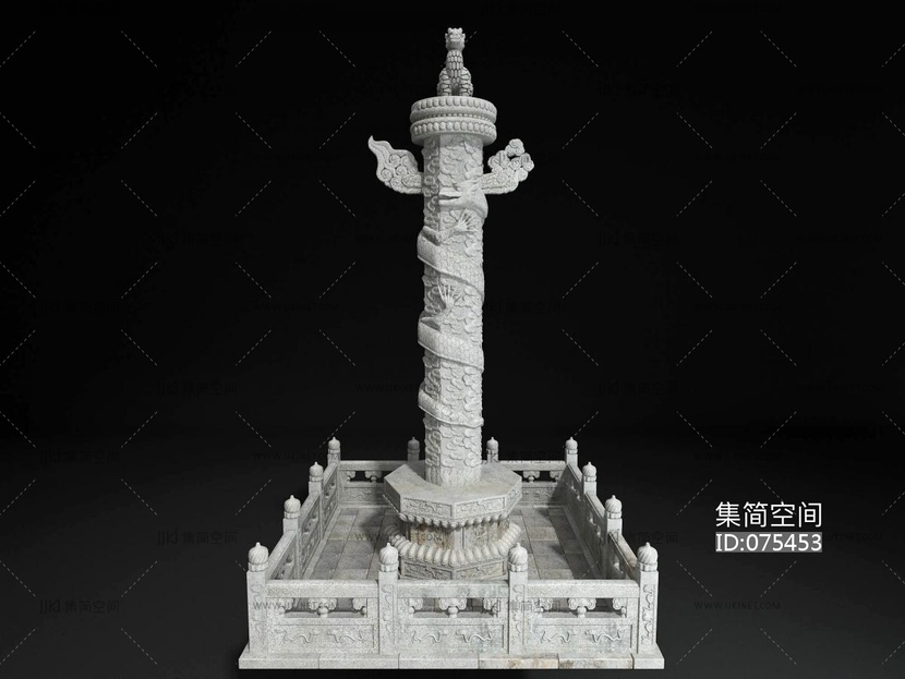 中式盘龙浮雕,,华表,石材围栏,麒麟 3d模型下载 [模型ID:75453]