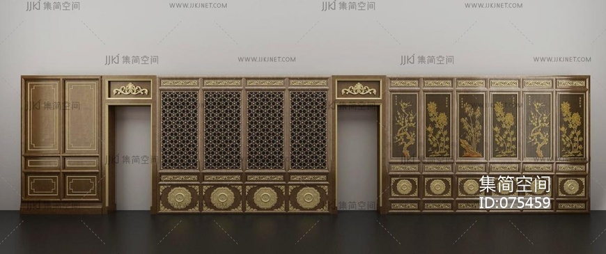 中式古典雕花,木门呢,门扇,花格,花窗3d模型下载 3d模型下载 [模型ID:75459]