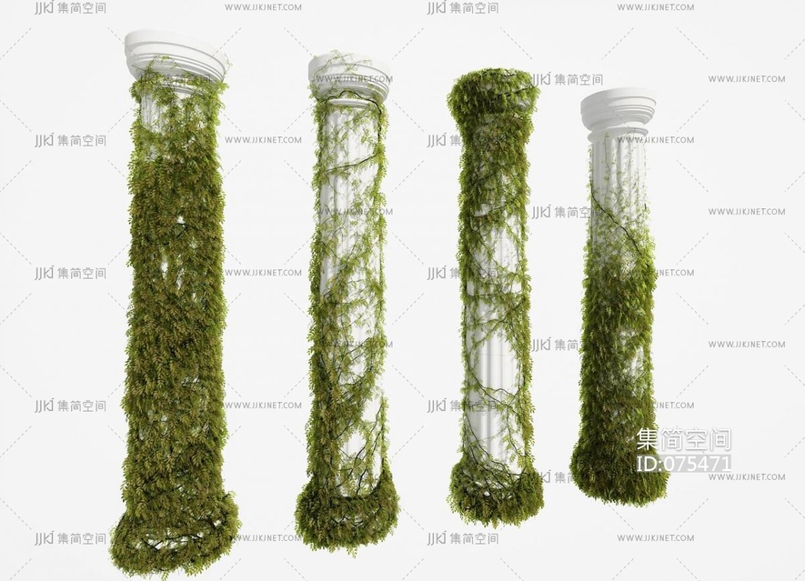 16欧式罗马柱,植物,爬山虎 3d模型下载 [模型ID:75471]