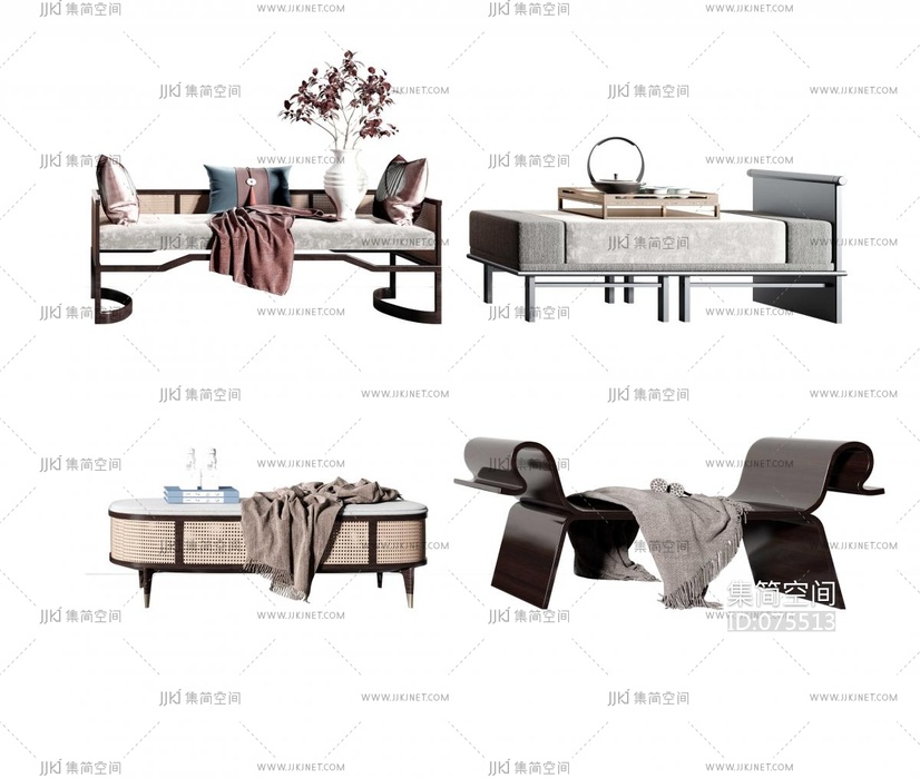 新中式床尾榻 3d模型下载 [模型ID:75513]