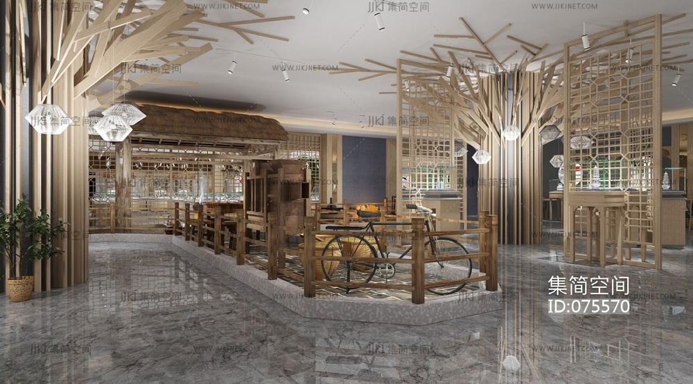 中式民宿农村生活小品场景 3d模型下载 [模型ID:75570]