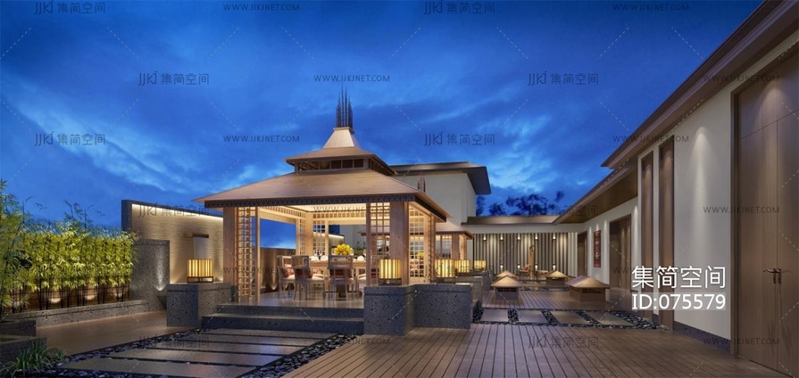 室外餐厅景观阳台 3d模型下载 [模型ID:75579]