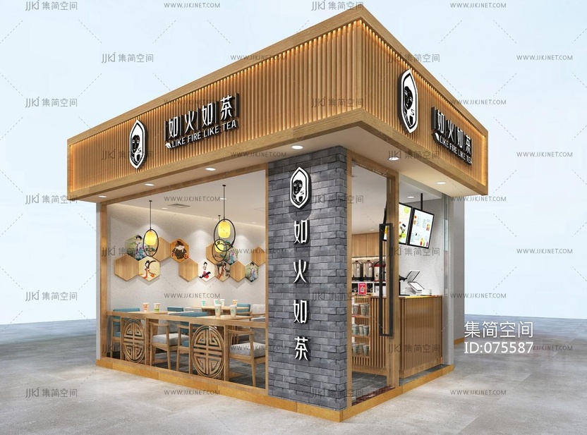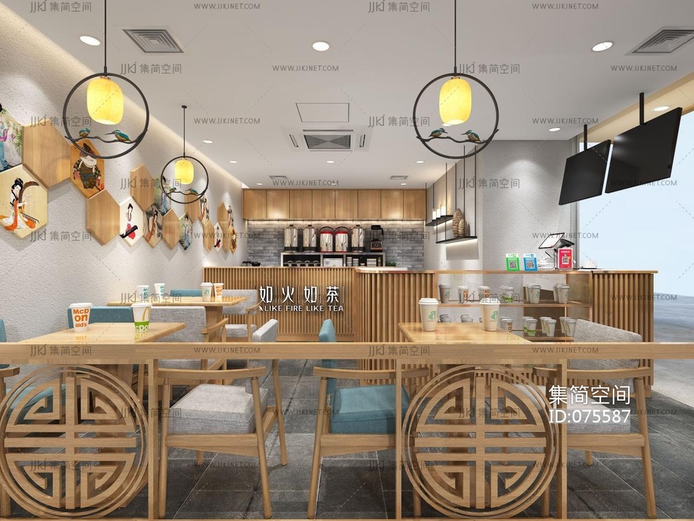 新中式奶茶店餐厅,门头 3d模型下载 [模型ID:75587]