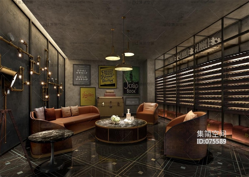 工业风美式混搭酒吧品酒室 3d模型下载 [模型ID:75589]