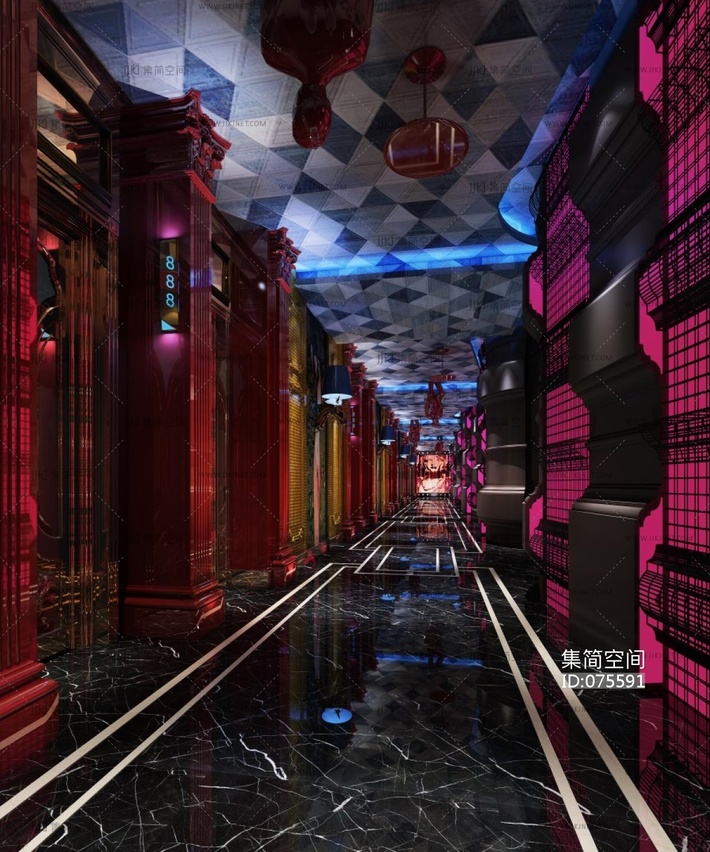 现代 欧式混搭KTV 酒吧过道 走廊 3d模型下载 [模型ID:75591]