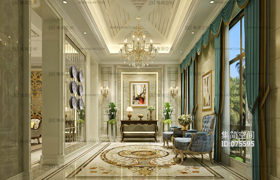 欧式法式门厅玄关走廊 3d模型下载 [模型ID:75595]