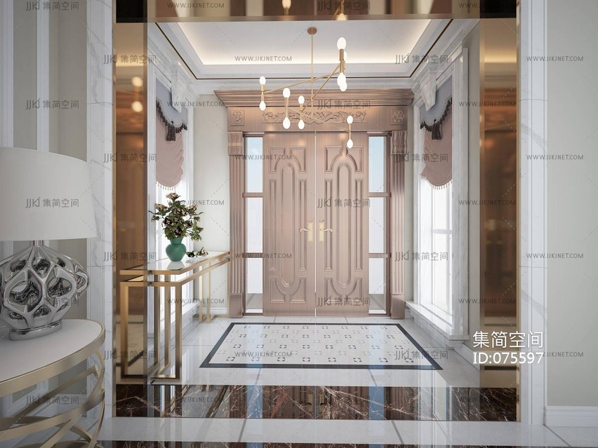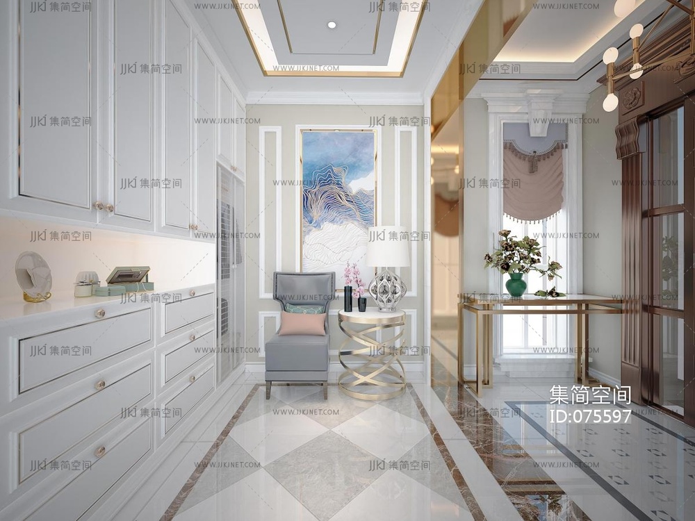 欧式法式混搭别墅 玄关,门厅,入户大门, (1) 3d模型下载 [模型ID:75597]