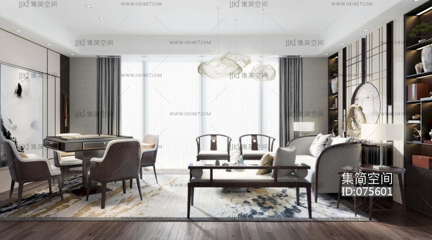 新中式娱乐室 麻将室 会客厅 3d模型下载 [模型ID:75601]