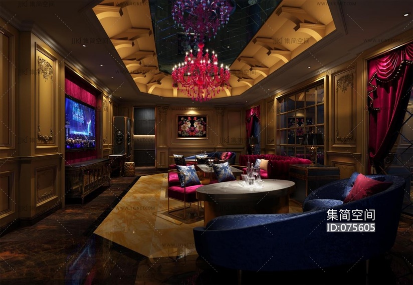欧式美式新古典KTV歌厅包间 3d模型下载 [模型ID:75605]
