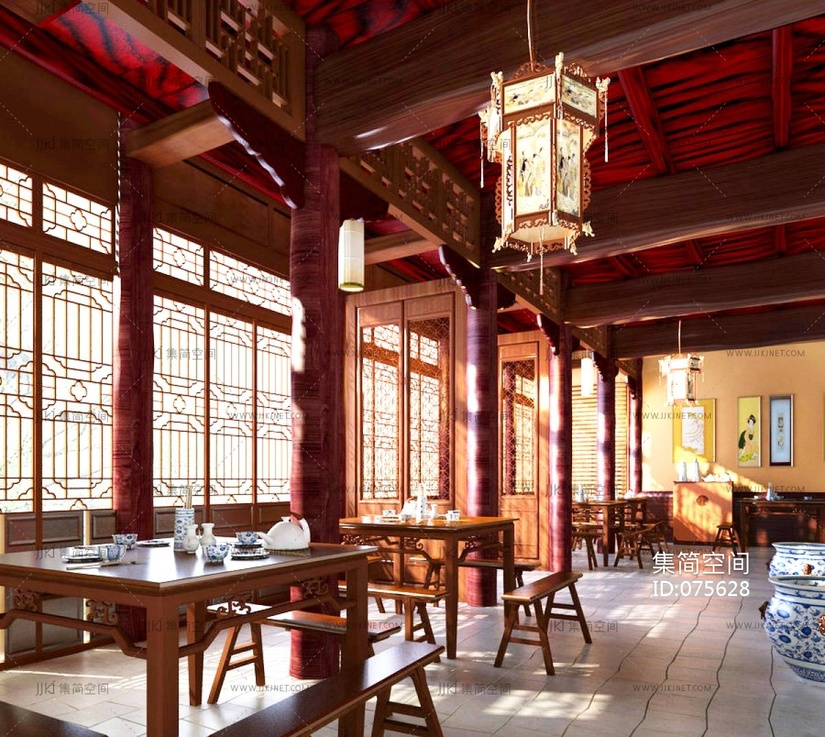 中式古典餐厅茶馆 3d模型下载 [模型ID:75628]