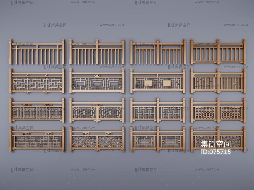 中式实木雕花栏杆,围栏,护栏,扶手, 3d模型下载 [模型ID:75715]