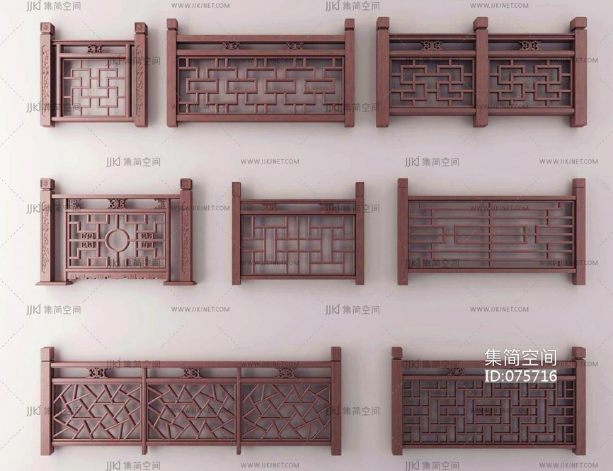 中式实木雕花栏杆,围栏,护栏,扶手,花格 3d模型下载 [模型ID:75716]
