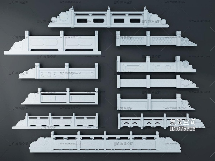 中式石材栏杆,玉石栏杆,护栏,扶手 3d模型下载 [模型ID:75718]