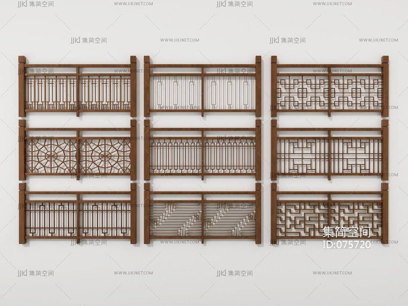 中式实木雕花栏杆,围栏,护栏,扶手, 3d模型下载 [模型ID:75720]