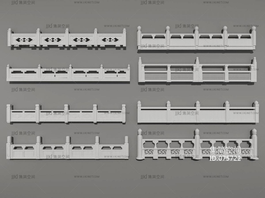 中式石材栏杆,玉石栏杆,护栏,扶手 3d模型下载 [模型ID:75722]