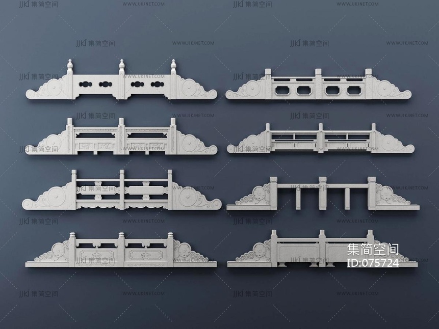 中式栏杆,构件,景观小品 3d模型下载 [模型ID:75724]