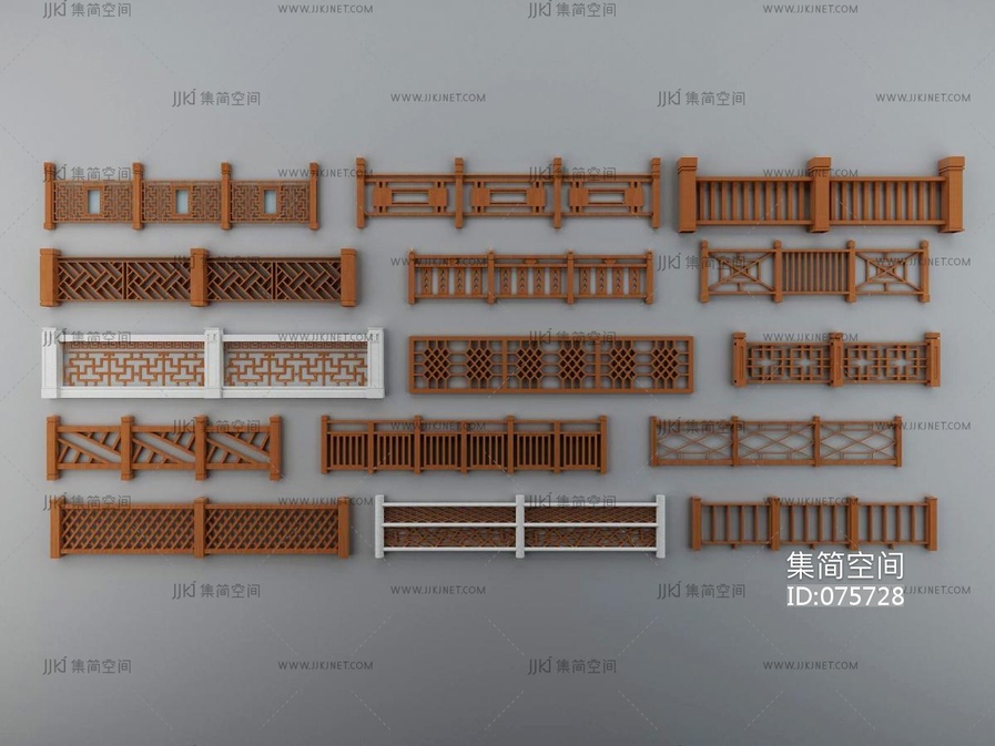 中式实木雕花栏杆,围栏,护栏,扶手, 3d模型下载 [模型ID:75728]